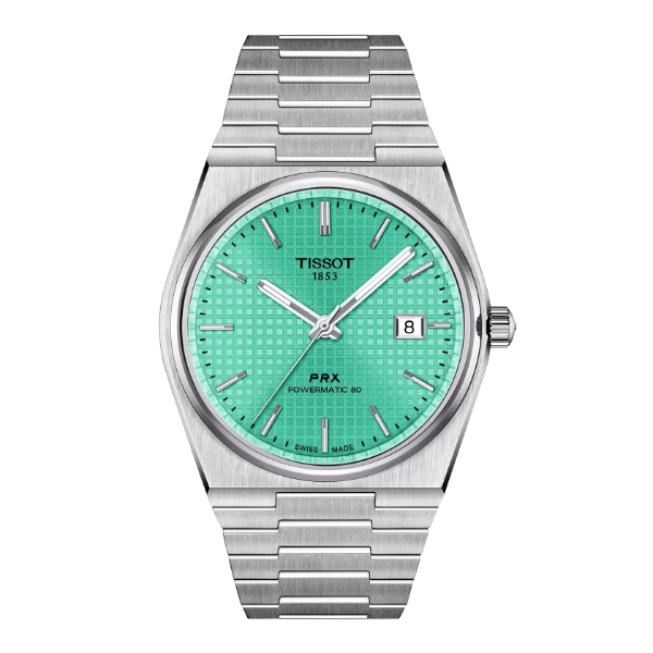 1. Tissot PRX Silver Stainless Steel Light Green Dial Automatic Watch