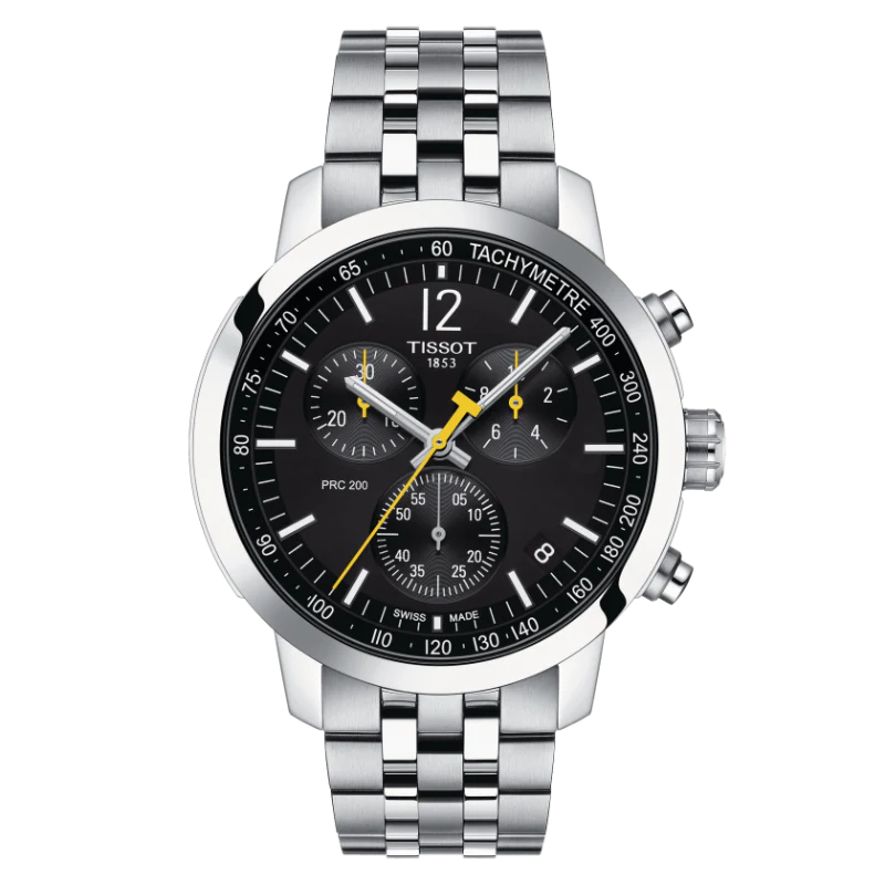 5. Tissot PRC 200 Silver Stainless Steel Black Dial Chronograph Quartz Watch for Gents