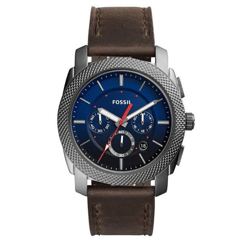 Add to WishlistFossil Machine Brown Leather Strap Blue Dial Chronograph Quartz Watch for Gents - FS5388