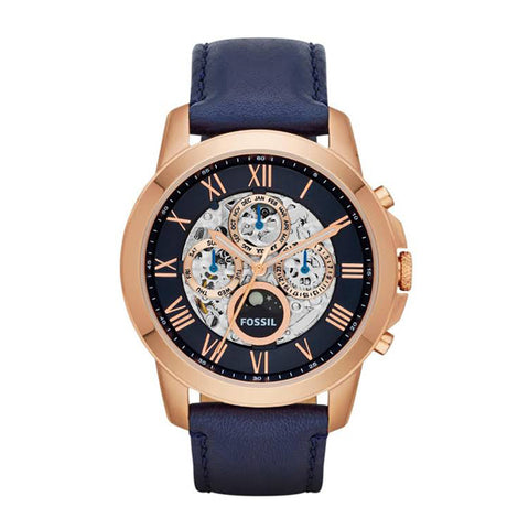 Add to WishlistFossil Grant Blue Leather Strap Skeleton Dial Automatic Watch for Gents - ME3029