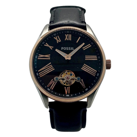 Fossil Black Leather Strap Black Dial Quartz Watch for Gents - BQ1143