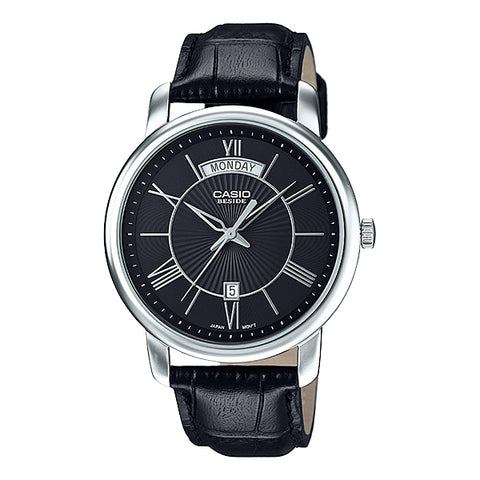Add to WishlistCasio Black Leather Strap Black Dial Quartz Watch for Gents - BEM-152L-1AVDF