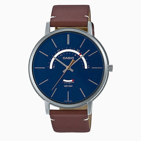 Add to WishlistCasio Brown Leather Strap Blue Dial Quartz Watch for Gents - MTP-B105L-2AVDF