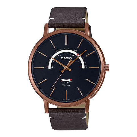 Add to WishlistCasio Brown Leather Strap Black Dial Quartz Watch for Gents - MTP-B105RL-1AVDF