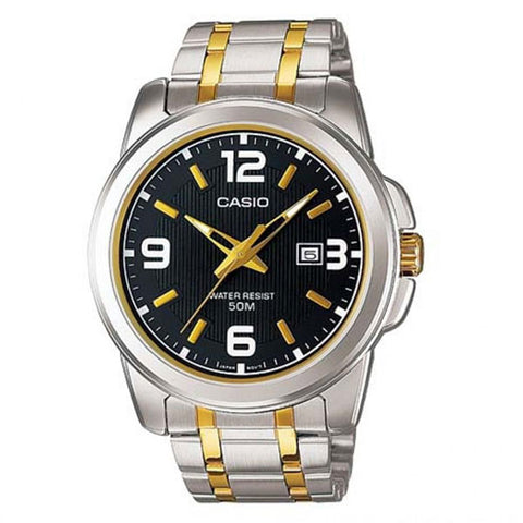 Casio Two-tone Stainless Steel Black Dial Quartz Watch for Gents - MTP-1314SG-1AVDF