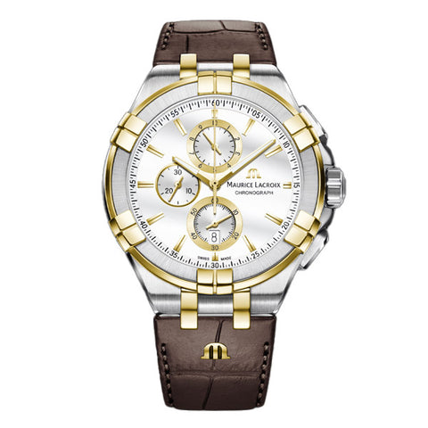 Add to WishlistMaurice Lacroix Aikon Brown Leather Strap Silver Dial Chronograph Quartz Watch for Gents - AI1018-PVY11-132-1