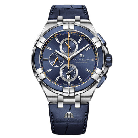 Maurice Lacroix Aikon Blue Leather Strap Blue Dial Chronograph Quartz Watch for Gents - AI1018-SS001-432-4