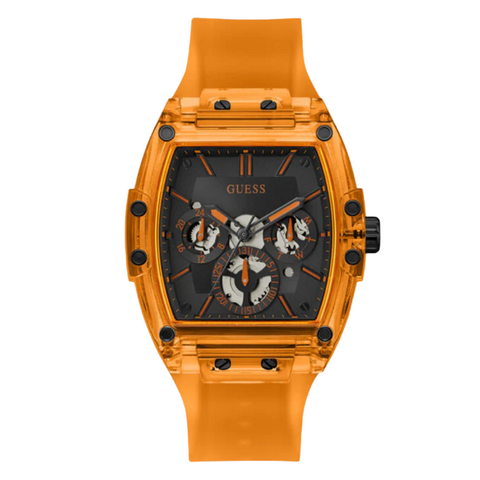 Guess Phoenix Orange Silicone Strap Black Dial Quartz Watch for Gents - GW0203G10