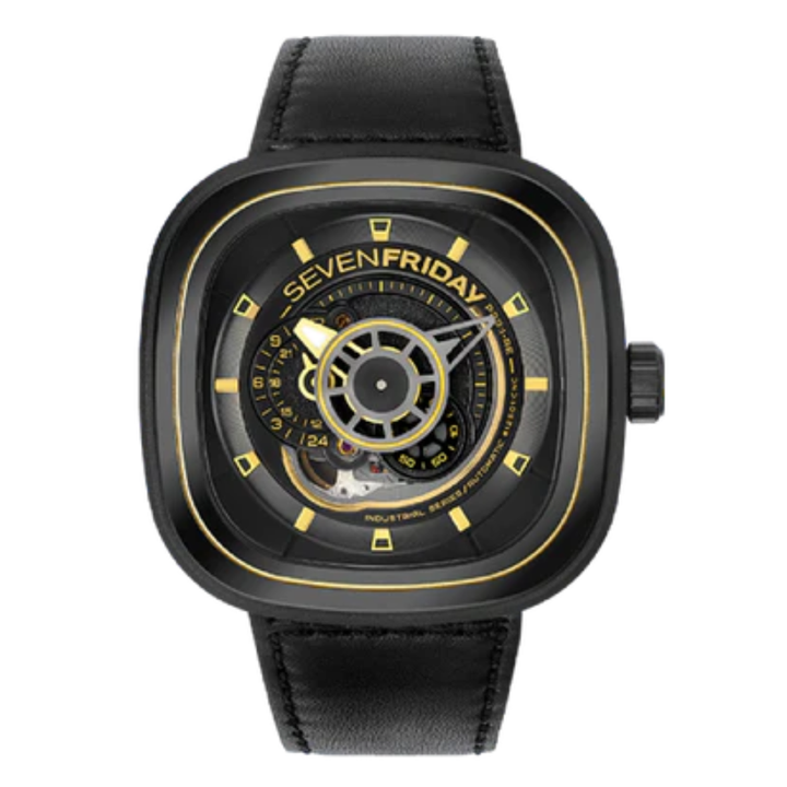 7Friday Black Leather Strap Black Dial Automatic Watch for Gents - P2B/02-C196