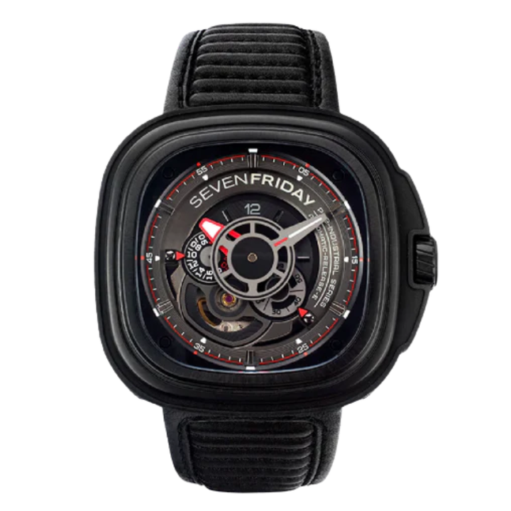 7Friday Black Leather Strap Black Dial Automatic Watch for Gents - P3B/01-G224