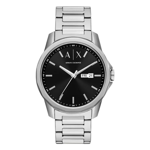 Armani Exchange Banks Silver Stainless Steel Black Dial Quartz Watch for Gents - Ax-1733