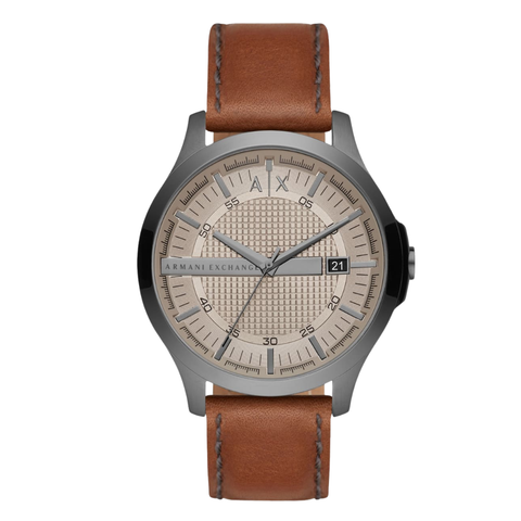 Armani Exchange Hampton Brown Leather Strap Grey Dial Quartz Watch for Gents - AX2414