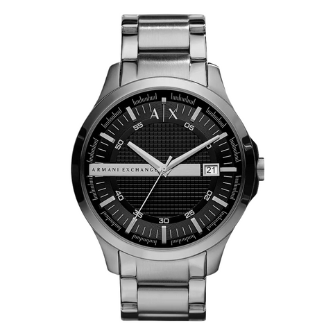 Armani Exchange Hampton Silver Stainless Steel Black Dial Quartz Watch for Gents - Ax-2103
