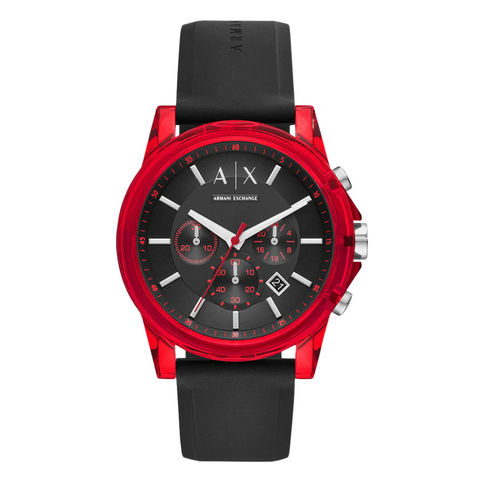 Armani Exchange Outerbanks Black Silicone Strap Black Dial Chronograph Quartz Watch for Gents - AX-1338