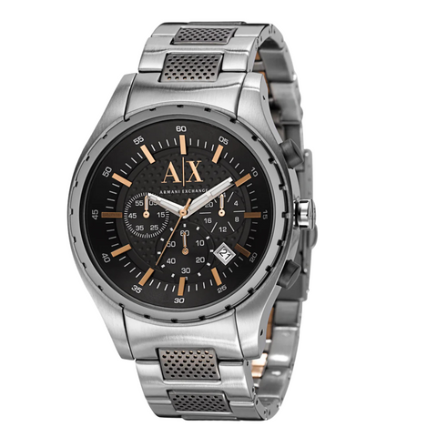 Armani Exchange Outerbanks Two-tone Stainless Steel Black Dial Chronograph Quartz Watch for Gents - AX-1093