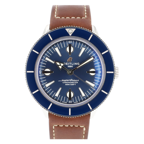 Breitling Brown Leather Strap Blue Analog Automatic Diver Watch for Men – Superocean Heritage ’57 (A10370161C1X2)