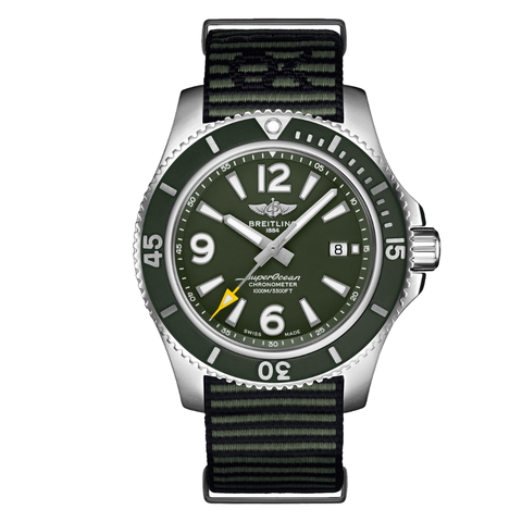 Breitling Superocean Green Nato Strap Green Dial Automatic Watch for Gents - A17367A11L1W1