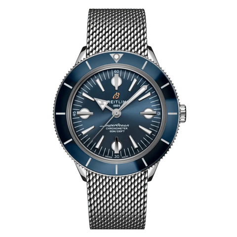 Breitling Superocean Heritage 57 Silver Mesh Bracelet Blue Dial Automatic Watch for Gents - A10370161C1A1