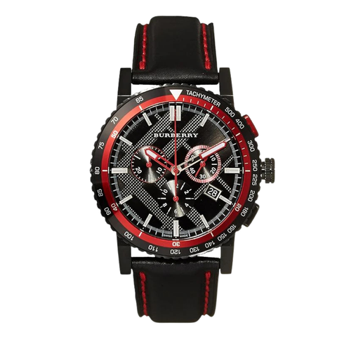 Burberry Black Leather Strap Black Dial Chronograph Quartz Watch for Gents - BU9803