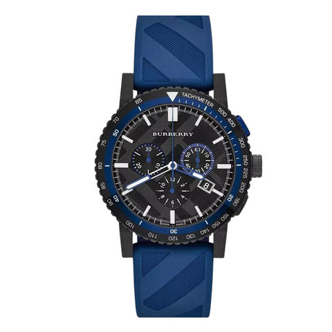 Burberry Blue Silicone Strap Black Dial Chronograph Quartz Watch for Gents - BU9807