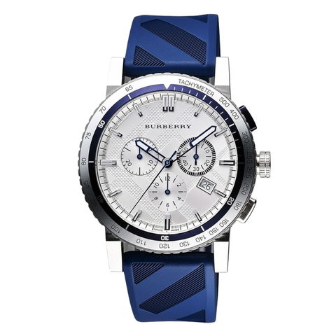 Burberry Blue Silicone Strap White Dial Chronograph Quartz Watch for Gents - BU9808