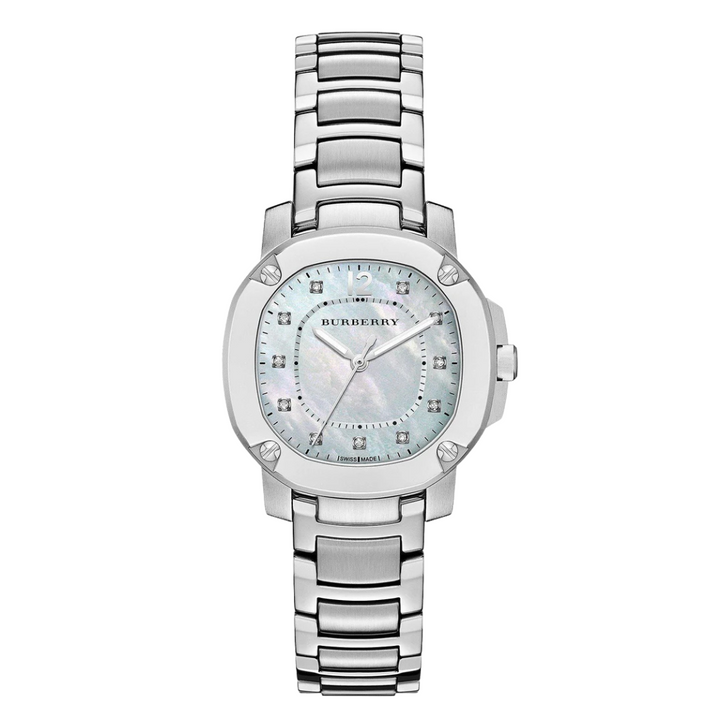 Burberry Britain Silver Stainless Steel Mother Of Pearl Dial Quartz Watch for Ladies - BBY 1804