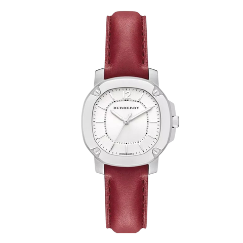 Burberry Red Leather Strap White Dial Quartz Watch for Ladies - BBY1705