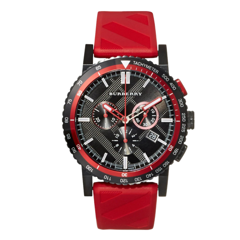 Add to WishlistBurberry Red Silicone Strap Black Dial Chronograph Quartz Watch for Gents - BU9805