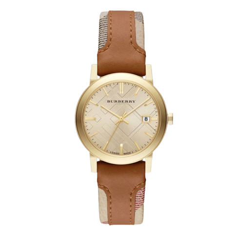 Burberry The City Brown Leather Strap Gold Dial Quartz Watch for Ladies - BU9133