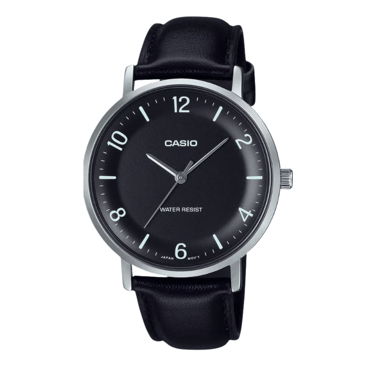 Casio Black Leather Strap Black Dial Analog Quartz Watch for Men – MTP-VT03L-1BDF