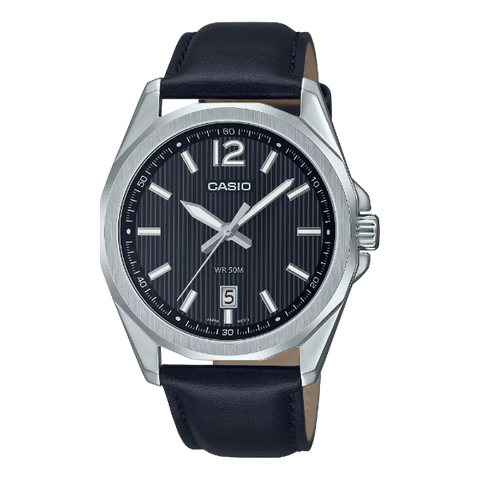 Casio Black Leather Strap Black Dial Quartz Watch for Gents - MTP-E725L-1AVDF