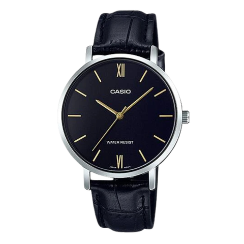 Casio Black Leather Strap Black Dial Quartz Watch for Ladies - CASIO LTP-VT01L-1BUDF
