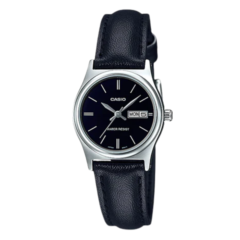 Casio Black Leather Strap Black Dial Quartz Watch for Ladies - LTP-V006L-1B2UDF