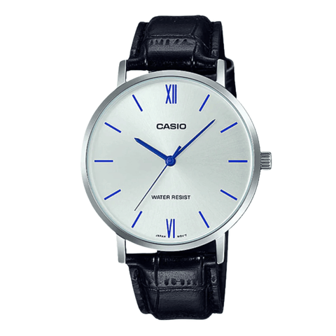 Add to WishlistCasio Black Leather Strap Silver Dial Analog Quartz Watch for Men – MTP-VT01L-7B1UDF