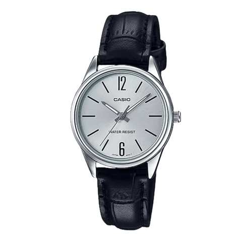 Casio Black Leather Strap Silver Dial Quartz Watch for Ladies - LTP-V005L-7BUDF