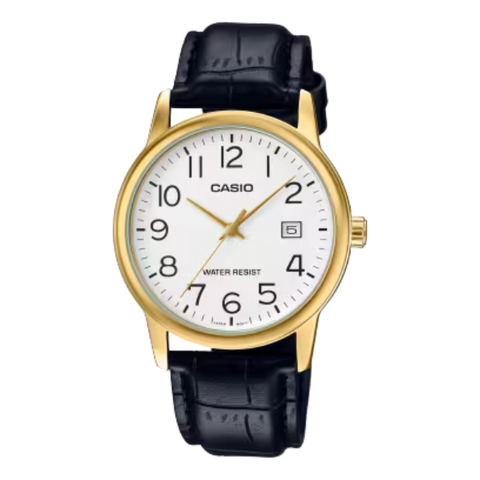 Casio Black Leather Strap White Dial Quartz Watch for Gents - MTP-V002GL-7B2UDF