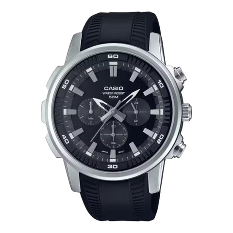 Add to WishlistCasio Black Silicone Strap Strap Black Dial Chronograph Quartz Watch for Gents - Casio MTP-E505-1AVDF AG
