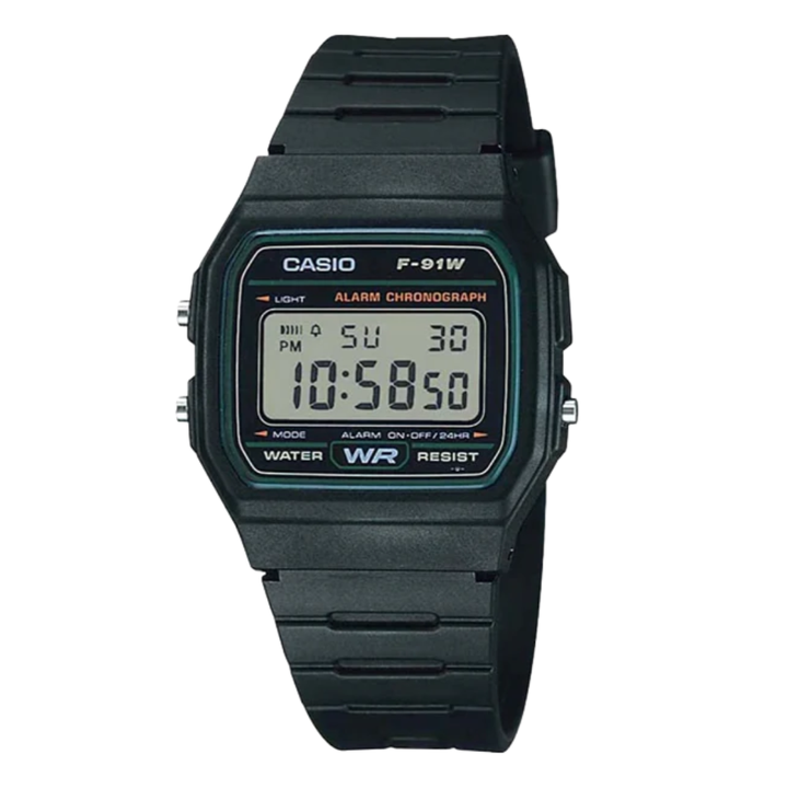 Casio Black Silicone Strap Strap Black Dial Quartz Watch for Gents - F-91W-3DG(AG)