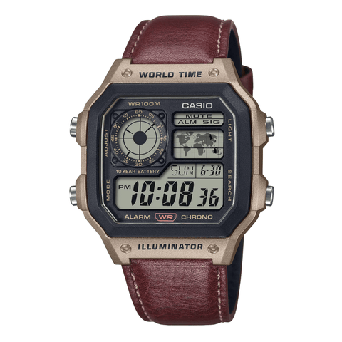 Add to WishlistCasio Brown Leather Strap Black Dial Quartz Watch for Gents - AE-1200WHL-5AVDF