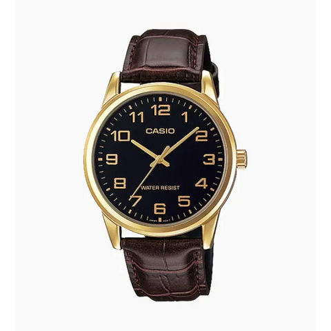 Add to WishlistCasio Brown Leather Strap Black Dial Quartz Watch for Gents - MTP-V001GL-1BUDF