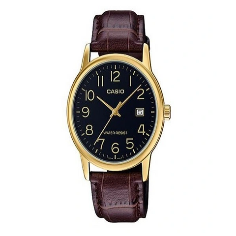 Add to WishlistCasio Brown Leather Strap Black Dial Quartz Watch for Gents - MTP-V002GL-1BUDF