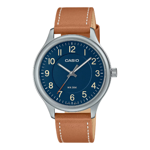 Casio Brown Leather Strap Blue Dial Quartz Watch for Gents - MTP-B160L-2BVDF