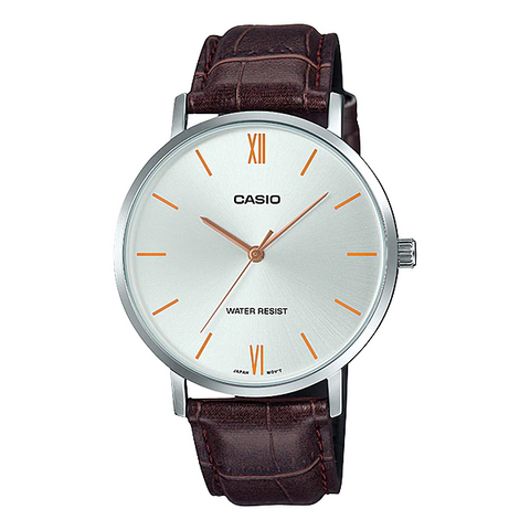 Add to WishlistCasio Brown Leather Strap Silver Dial Quartz Watch for Gents - MTP-VT01L-7B2UDF