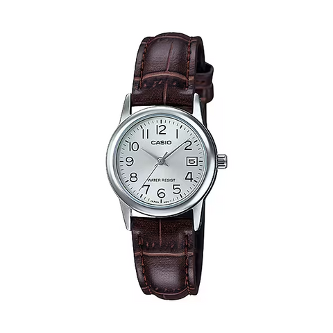 Casio Brown Leather Strap Silver Dial Quartz Watch for Ladies - LTP-V002L-7B2UDF
