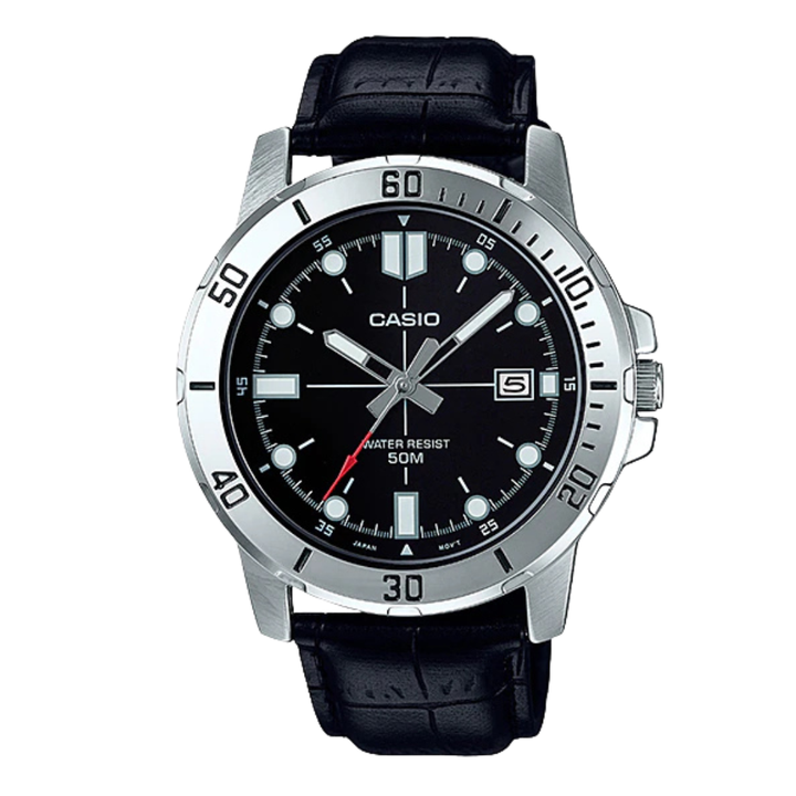 Casio Enticer Black Leather Strap Black Dial Quartz Watch for Gents - MTP-VD01L-1EVUDF