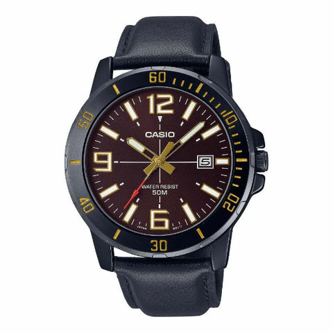 Add to WishlistCasio Enticer Black Leather Strap Burgendy Dial Quartz Watch for Gents - MTP-VD01BL-5BVUDF