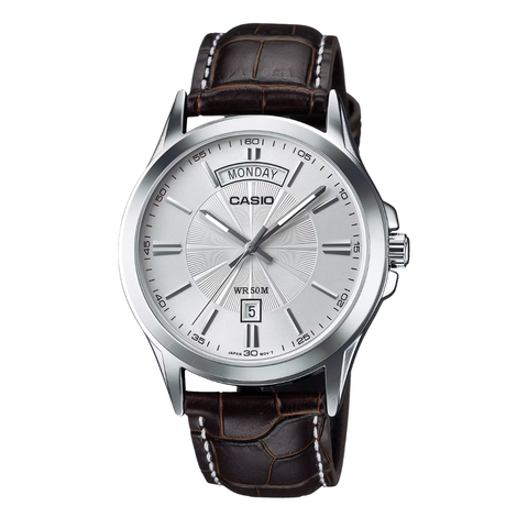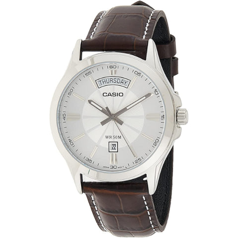 Casio Enticer Brown Leather Strap Silver Dial Quartz Watch for Gents - MTP-1381L-7AVDF