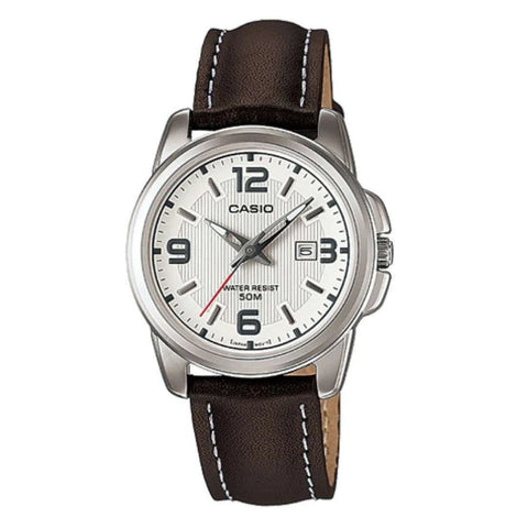 Casio General Brown Leather Strap White Dial Quartz Watch for Ladies - LTP-1314L-7AVDF