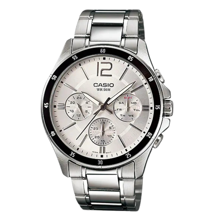 Casio General Silver Stainless Steel Silver Dial Chronograph Quartz Watch for Gents - MTP-1374D-7AVDF