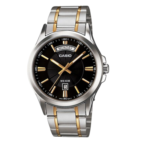 Casio General Two-tone Stainless Steel Black Dial Quartz Watch for Gents - MTP-1381G-1AVDF